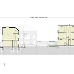The two proposed mews houses break up the existing built mass on the site. The separation between blocks introduces new visual links and transparency that was not previously present and will be landscape to enhance the communal courtyard space.
