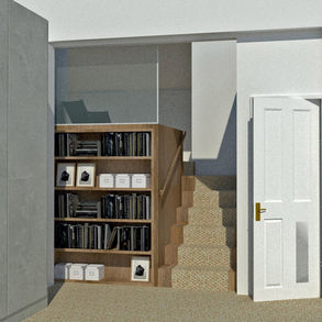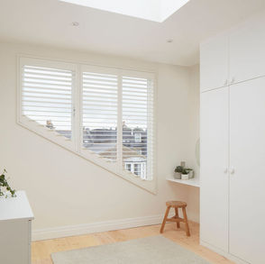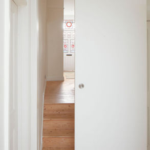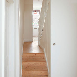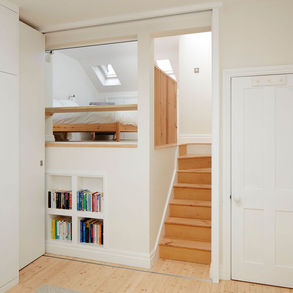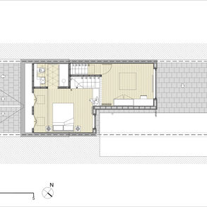 A dormer extension was constructed using charred timber finish. With bespoke windows and roof-lights bringing ample amounts of natural light of the space. Internally the extension has created a split level sapce with a sliding folding partition to divide the multi functional yoga and dressing room space from the main bedroom.