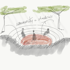 The idea focuses on a 'cluster' of buildings with the potential to expand as the community grows both mentally and physically. A line of trees act as a natural organic entrance into the school. Upon entry, you are met with a circular community space that we hope will be utilised as a place to congregate and be recognised as a key means of orientation, and potentially a pivotal point in how the community interact and grow.